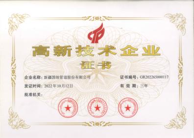 四川國(guó)統(tǒng)高新技術(shù)企業(yè)證書(shū)