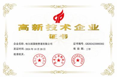 哈爾濱國(guó)統(tǒng)高新技術(shù)企業(yè)證書(shū)